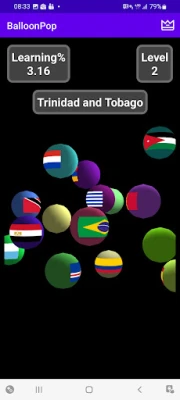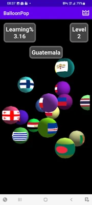 Pop the balloon with the flag of the country named at the top of the screen. At every level, you will have 15 new flags and you will have to pop 10 of them to complete the level. This game is intended to help you learn the country flags of the world. An algorithm will count your learning percentage. There are 195 flags to learn.