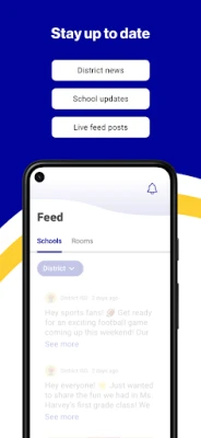DISTRICT UPDATES In the Live Feed is where you’ll find updates from administration about what’s going on in the district right now. Whether that’s celebrating a student’s success, or reminding you about an upcoming deadline.