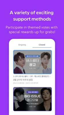 - Participate in various events related to your favorite celebrities, such as Trot Champion audience tickets and signed polaroids, and receive prizes!