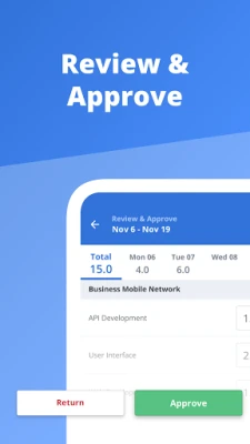 - View open, submitted, returned, and approved time for previous, current, and next period.