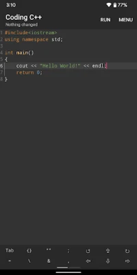 Feature: 1.Code Compile & Run 2.Auto Save 3.Highlight Key Words 4.Open/Save file 5.Smart Code Hint 6.Format Code 7.Common Character Panel 8.Support Every InputMethod