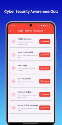 With Cyber Security Awareness Quiz app, you can learn, practice, and protect yourself against modern digital threats anytime, anywhere. Stay informed, stay alert, and strengthen your defense against cybercrime.