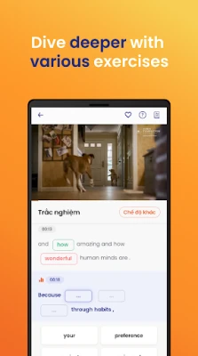 - Offer various interactive learning modes: Watch with subtitles, Fill in the blanks, Multiple-choice, etc.