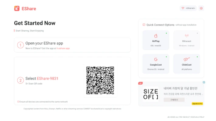 After EShareCast is activated on your TV, you can cast your phone to your TV with EShare installed on your phone. Play pictures, audio, videos, and docs stored on your phone through EShare has never been easier than this. Please note you may need an activate code to use this fully.
