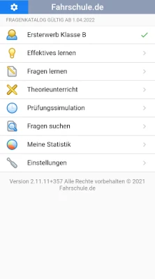 - Enthält alle aktuellen seit 01.04.2025 gültigen amtlichen Prüfungsfragen für alle Führerscheinklassen in Deutschland. Unter "Einstellungen" können Sie den Fragenkatalog wechseln. Ihre Lernergebnisse bleiben erhalten.