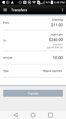 Transfer money, Pay Bills, View and activate your cash back offers, review balances, deposit a check, or find the closest ATM/financial center with a simple touch of a button.