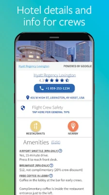- Hotel Information: Access updated hotel details, amenities, and local restaurants, bars, and attractions, all curated by fellow crew members. Find a new amazing restaurant? Even you can add it to the list!