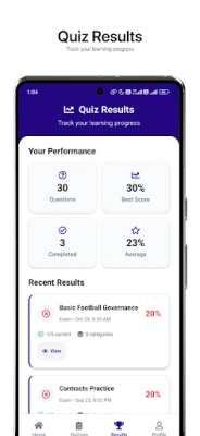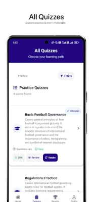 Football Agent Quiz helps you learn football rules, transfers, contracts, and game management with bite‑size lessons and interactive quizzes. Practice for free, track your progress, and upgrade to Premium to unlock full exam prep and topic facts.