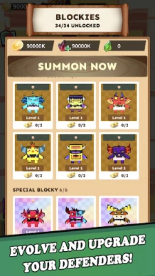 - **Diverse Defenders:** Summon and evolve blocky defenders with unique abilities.