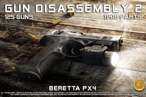 Explore the world of weaponry like never before! Disassemble and reassemble 133 highly-detailed models with fully working animated parts! View the gun in complete 3D, and learn about the inner workings of the guns. Operate the weapons in OPERATION mode and try out your skills by disassembling the weapons as fast as possible, competing with players AROUND THE WORLD!