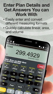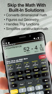 This professional HVAC & Sheet Metal Calculator delivers advanced construction math for tackling complex calculations. This versatile tool brings dimensional math, geometry, and trigonometry to your device with trade-specific functions.