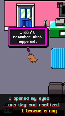 Ugh...My head hurts... I don't remember what happened. Though I recall falling asleep yesterday after drinking like a fish... I just woke up now and realized I had become...a dog??? What a crappy situation... I should come to my senses and look around. I should look for a way to go back to being a human.