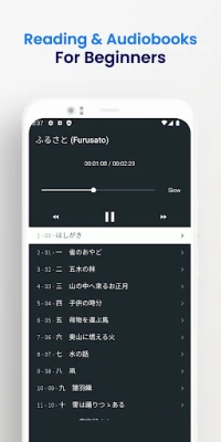 Tailored for Beginners' Success: Our app caters to all proficiency levels, whether you're starting your language journey or seeking to enhance existing skills. It features a thoughtfully selected range of beginner-friendly books, including timeless classics and captivating tales. This ensures a comfortable and engaging learning experience as you delve into the enchanting world of Japanese literature.