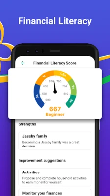 - Kids receive feedback on their progress with the proprietary Jassby Financial Literacy score as they complete tasks and improve their financial skills.