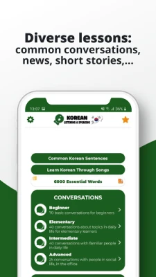 "Learn Korean - Listening And Speaking" is one of PORO’s ongoing apps for self-learners who want to speak Korean easily and effectively. With 750 daily dialogs, a list of lessons with various topics from greeting, introduction, shopping, business conversation, family talks, etc…. It's suitable for all Korean learners from beginner to intermediate and advanced learners to practice speaking Korean.