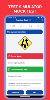 * Extensive Question Bank: The app contains a vast database of practice questions meticulously designed to cover all aspects of the test. Our app contains questions on topics such as road signs, traffic laws, safe driving practices, and more.