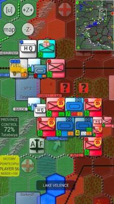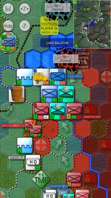 Developer note: This particular setup is such that if you do not miraculously achieve an early win before the Red Army gets fully engaged, this scenario will demand a long, painful and shrewd maneuvering to clear the required area....Once you have bounced back from the early struggles. The fact that the lake splits the map into northern and southern sector, with almost all armor locate north, opens up some intriguing possibilities to hook south to cut off all advanced Red Army units below the lake Balaton.