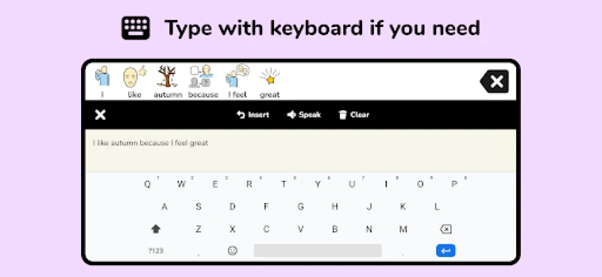 Our app also comes equipped with an internal keyboard, so you can type anything you'd like. This feature is especially useful for individuals who prefer to type rather than use a symbol-based communication system.