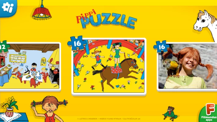*** Updated version: 2 new puzzles and new interface! *** Meet the world's strongest girl, Pippi Longstocking and her friends in this great puzzle app. There are eight puzzles with different difficulty levels and an interactive surprise after completing each puzzle!