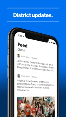 DISTRICT UPDATES In the Live Feed is where you’ll find updates from the administration about what’s going on in the district right now. Whether that’s celebrating a student’s success, or reminding you about an upcoming deadline.