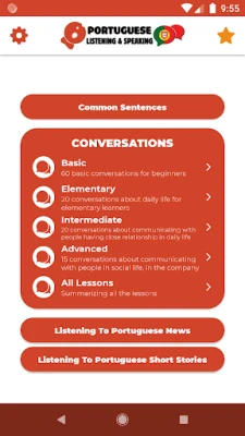 "Learn Portuguese - Listening And Speaking" is one of PORO’s ongoing apps for self-learners who want to speak Portuguese easily and effectively. With 115 daily dialogs, a list of lessons with various topics from greeting, introduction, shopping, business conversation, family talks, etc…. It's suitable for all Portuguese learners from beginner to intermediate and advanced learners to practice speaking Portuguese.
