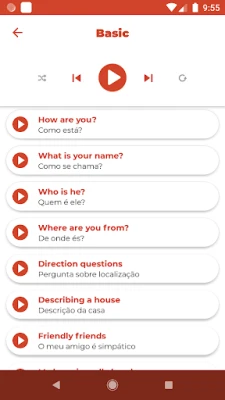 Enjoy practicing Portuguese while driving or traveling…, you just need to turn on the app and click on playlist mode.