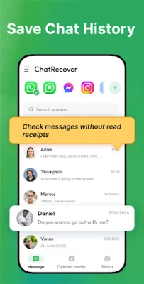 Stay in control of your conversations by reading messages privately without being seen. Plus, with our fantastic status saver, you can download, view, and share your favorite statuses in just one tap! Efficient, secure, and convenient—ChatRecover ensures you stay on top of every important message!