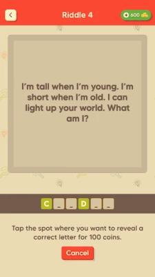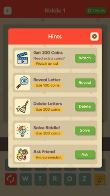 ๐ก Game Hints: Need a little help cracking a tough riddle? No worries! Use game hints such as "Delete Letters" to remove irrelevant choices, "Reveal Letter" for an extra nudge, or go all-in with "Solve Riddle" to uncover the answer!