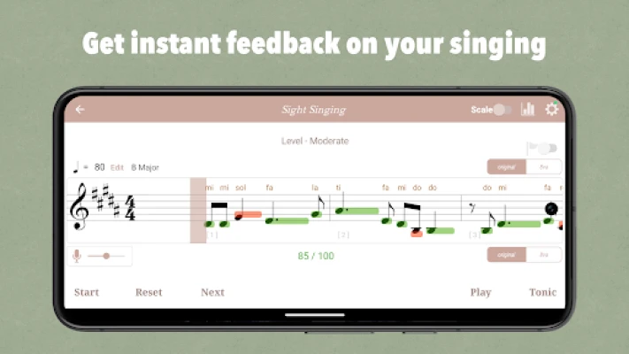 • Analyze the pitch you sing for each note and receive instant feedback on its accuracy.