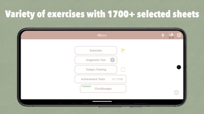 • Challenge yourself with Achievement Tests featuring over 1700+ highly selected musical sheets.