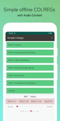 This is a basic offline application to keep Colreg's and the meanings handy when you actually need them.