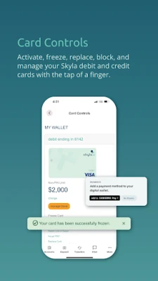 Skyla Mobile Banking allows you to view account activity and analyze spending, make transfers and deposit checks, pay bills and make loan payments, control your cards, apply for loans, and find and chat with us – all while on the go!