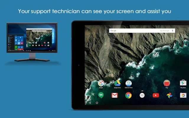 Get remote support of your mobile device from any computer (Windows, Mac, Linux, Chromebook) with Splashtop On-Prem. User can real-time screen share to remote technician. Technician will be able to share clicking pointer remotely to help guide the user. Session connection is encrypted using 256-bit AES / TLS .