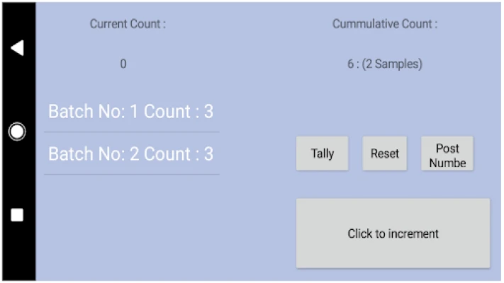 Counter tally, click to increment and by batch - results can be emailed using own email account for record keeping.