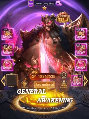 In the game, players enhance their strength by recruiting generals, acquiring equipment, upgrading their star levels, and crafting divine weapons.