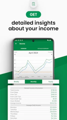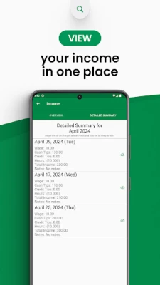 With Tip Tracker, you can easily track your hourly income, hours worked, and tips.