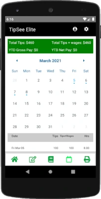 Effortless Tip Tracking: Quickly log your daily tips, including cash and credit card tips, with a few taps. Our intuitive calendar view provides an instant overview of your earnings.