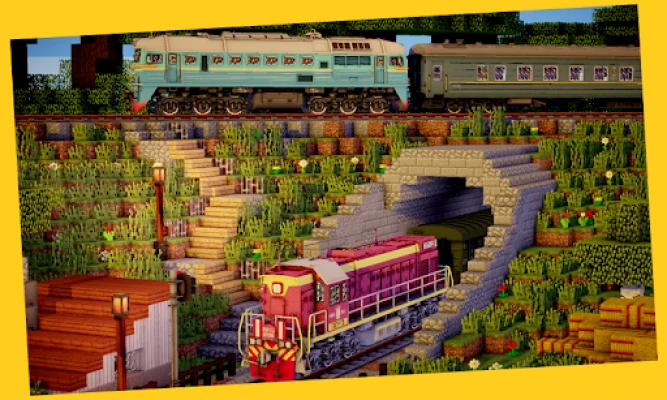 This mod or addon will enhance the realistic Mincraft game by including a sizable number of pixel-based MC locomotive mods, gorgeous and incredibly fast MC add-on trains, a wide variety of MC skins, and extra rails for your amazing buildings in Survival Craft Mine.