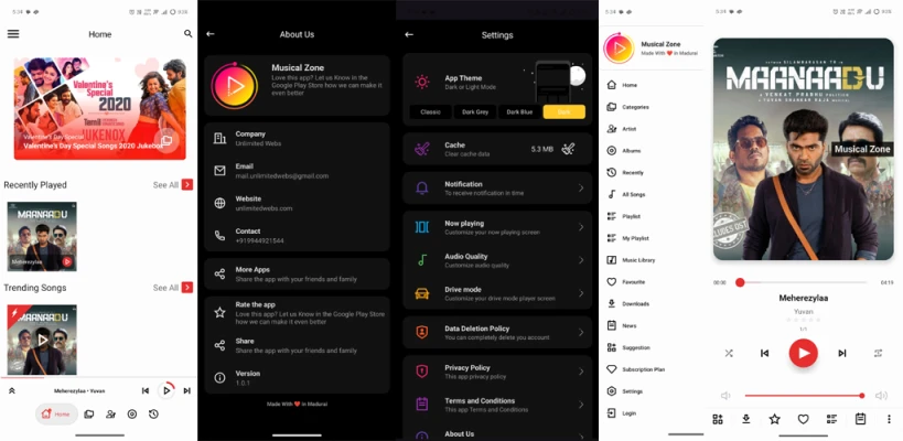Musical Zone (package name: unlimitedwebs.musicalzone) is developed by Unlimitedwebs and the latest version of Musical Zone ( Tamil Songs + Radio) was updated on September 15, 2025. Musical Zone ( Tamil Songs + Radio ) is in the Music &Audio category. You can check all apps from the developer of Musical Zone ( Tamil Songs + Radio + Audio Books ). Currently this app is free. You can download this app on https://unlimitedapk.in or Google Play for Android 5.0+. All APK files on https://unlimitedapk.in are original and 100% safe with fast download.