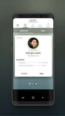 - Find applicants - View an applicant's profile and reviews and hire them on the spot