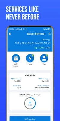 1- Inquiry about the subscription information and details 2- Inquiring about the subscription expiration date 3- Inquiry about the subscription status, current speed and activated package 4- Inquire about monthly or daily data consumption 5- Inquire about logs on the Internet and the consumption of data in each session 6- Inquiring about all payments for the monthly bills and added packages 7- Inquiry about the subscription balance