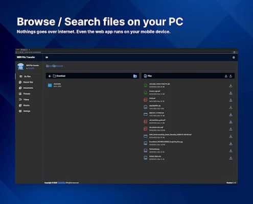 WiFi File Manager is the easiest way to access your files on your Android phone via WiFi on any PC at home. ๐