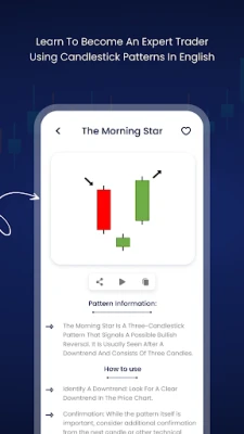 - Easy to read the text and clear image representation for each candlestick pattern.