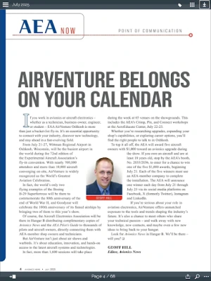 Avionics News magazine, a monthly publication of the AEA, is the voice of the general aviation electronics industry. First published in November 1963, it is the largest, single representation of approved maintenance organizations in the world.