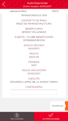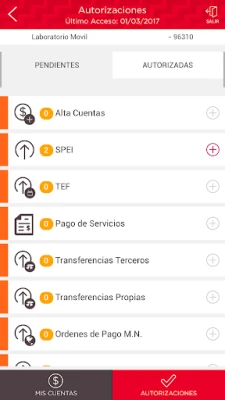 • Realizar consultas de saldos y/o movimientos • Ejecutar las operaciones pendientes por autorizar • Visualizar las operaciones ya autorizadas
