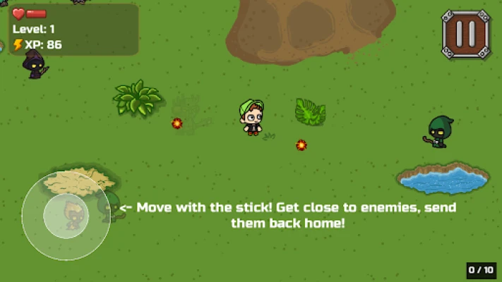 Control your hero with just a swipe of your finger! Get close to your enemies and send them back home!