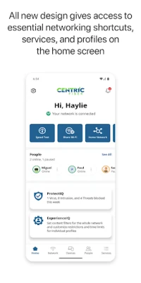 Centric Fiber customers with a Centric Fiber Gateway get a powerful, more customizable internet connection. This easy-to-use mobile app lets you enjoy ultimate internet control by creating your own WiFi name and password, assign user profiles, view and control connected devices, and assess the strength of WiFi to ensure the best experience. Plus, subscribers can access enhanced features such as network protection and parental controls to help keep your family safe and secure while online.