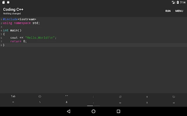 Feature: 1.Code Compile & Run 2.Auto Save 3.Highlight Key Words 4.Open/Save file 5.Smart Code Hint 6.Format Code 7.Common Character Panel 8.Support Every InputMethod