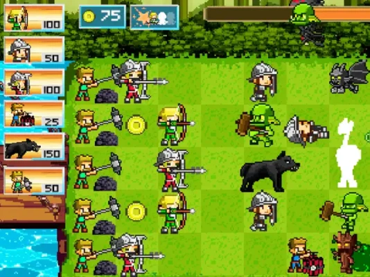 In "DEFENDER OF THE REALM : an epic war", you must command and order your army of knights to defend your kingdom from monsters' attacks. Your ennemy is rising an army with hordes of powerfull creatures and magic spells, and just started to kill your people. Forge your defenses, build new units, battle against your foes to remain the king and save your realm from the deadly clash in this dark age.