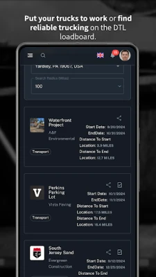 DTL is more than just a loadboard. It’s a social marketplace designed to build long-lasting relationships between truck owners, contractors, and brokers. Communicate, collaborate, and grow your network. Strengthen your connections and discover future opportunities. Whether you’re a truck owner looking for work, a contractor looking for trucking solutions, or a broker trying to find the best material disposal solutions for a client, DTL is the platform that will keep your business moving forward.